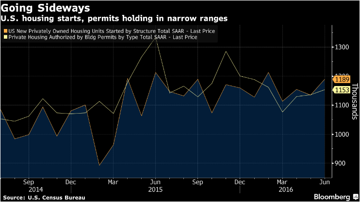US Commerce Department data showed on Tuesday that new-home construction in the U.S. rose more than forecast in June, a sign that demand for housing continues to firm heading into the second half of the year. Housing starts have remained in a steady but tepid recovery, rising 4.8% m/m to a seasonally adjusted annual rate of 1.189 million in June. The uptick was largely driven by a jump in starts in the West and the Northeast, two of the pricier regions in the country.
