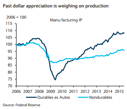 - As of now, we view the recent flatness as a response to past dollar appreciation. As these effects wane, we expect production to resume its positive trend.