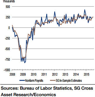 "Consistent with a reduction in layoffs during the reference period, the average number of persons filing initial jobless claims contracted by 5K to 272K over the four weeks leading up to the August establishment survey, the lowest tally in three months. Meanwhile, the number of persons collecting unemployment insurance benefits was little changed at 2.27 million between surveys, implying that previously jobless persons continue to find work", says Societe Generale.