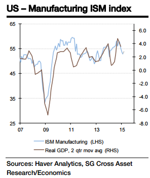 "Manufacturing activity improved modestly in March driven by better weather and to some extent by the reopening of West Coast ports. Our forecast, if realized, would be consistent with real GDP expanding at an annualized clip of about 2.5% in Q1", said Societe Generale in a report on Monday.