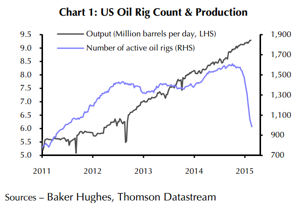The sharp fall in the number of rigs drilling for oil in the US has been the focus of many headlines over the last few weeks amid speculation about what fewer rigs means for US shale oil production.
