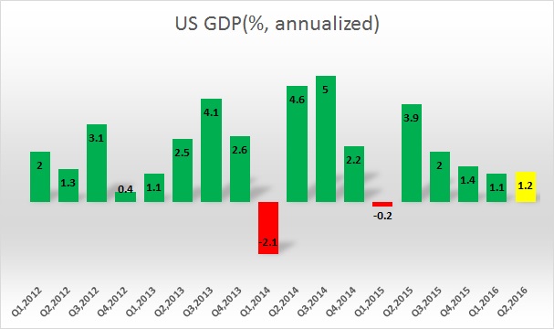 - GDP grew by 1.1 percent in the first quarter of 2016 and the first flash reading of the second quarter GDP showed 1.2 percent growth.