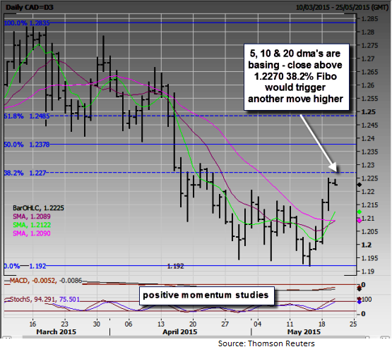 - Positive momentum studies, 5, 10 & 20 dma's target 1.2270