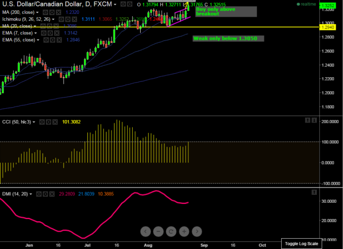 - Loonie has broken major trend line resistance 1.3200 and this confirms short term bullishness, a jump till 1.3370 (161.8% retracement of 1.3212 and 1.2950) cannot be ruled out.