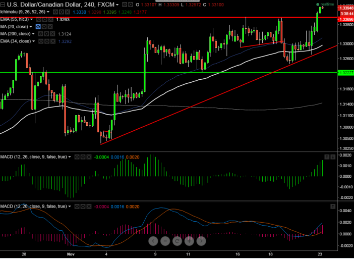 - USD/CAD has broken major trend reversal level 1.3380 and break above confirms major bullishness, a jump till 1.3450/1.3500 is possible .