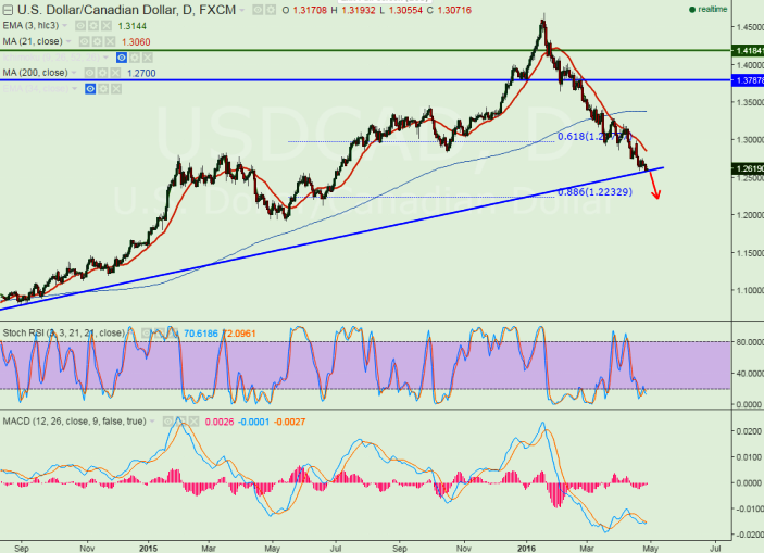 - Loonie has made a low of 1.2950 and slightly recovered till 1.26330 from that level. It is currently trading around 1.2601.