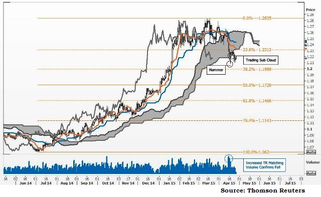 - Possibility seen for gains to the Ichimoku cloud base at 1.2319