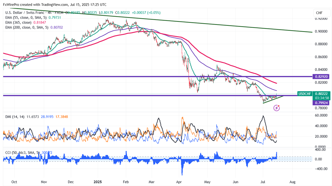 The pair is trading above the 55-EMA, 200 EMA, and 365 EMA on the 60-minute chart, indicating a bullish trend. The immediate resistance is at 0.8050, any break above targets 0.8090/0.8140/0.8180/0.8250/0.8300.