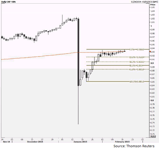 Pair corrects earlier gains to 0.9367 and the bid has been filled at 0.9315 Target 0.9550, by 76.4% of 1.0212/0.7360 post floor removal slide at 0.9539 By monthly lows from Dec 2014 at 0.9554 Stops are at 0.9170 level