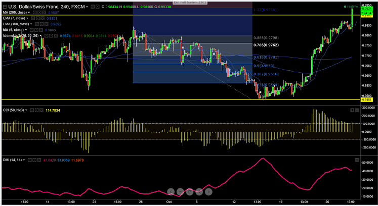 USD/CHF has broken major resistance 0.9900 which confirms short term bullishness , jump till 1.00/1.0120 level is possible .