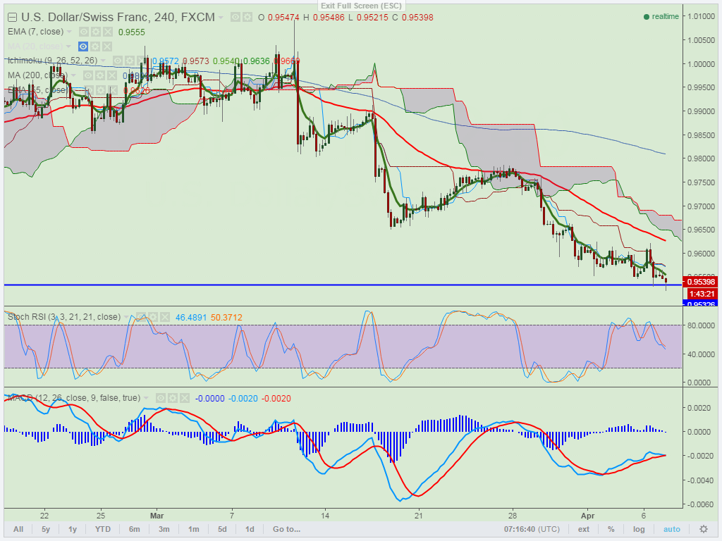 - Major resistance – 0.9580 (4H Tenken-Sen and Kijun-Sen)