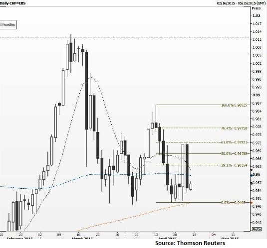Long in play but big down day and negative close concerns Prices trade back below the 10 and 100 DMAs at 0.9617 and 0.9595 The long stop is under the recent base at 0.9486 (Apr 3 low)
