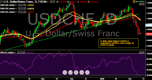 We prefer to take short position in USD/CHF around 0.9730 levels, stop loss at 0.9875 and target at 0.9611 levels.