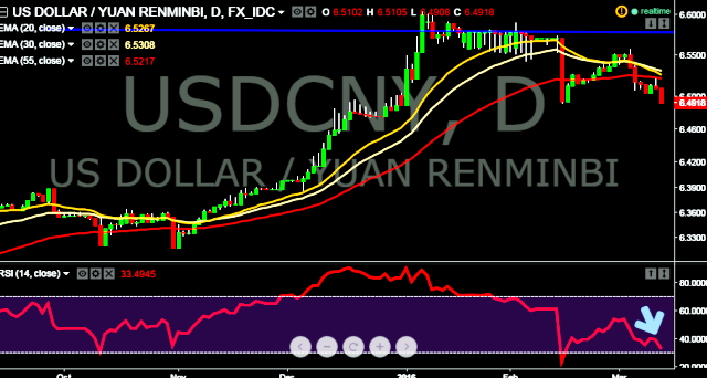 We prefer to take short position in USD/CNY around 6.50, stop loss 6.5220 and target 6.4732 levels.