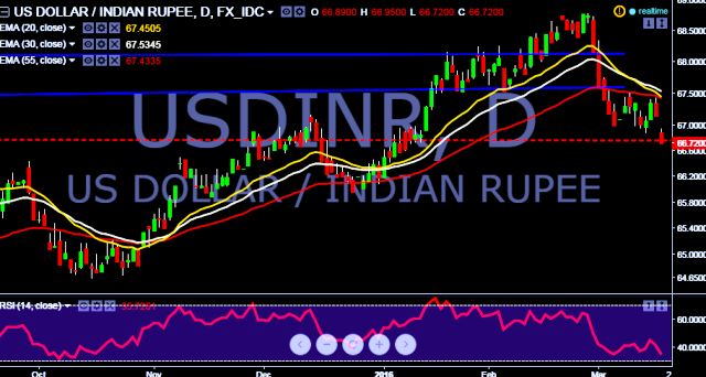 - It made intraday high at 66.95 and low at 66.72 levels.