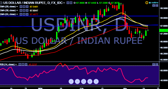 - It made intraday high at 67.44 and low at 67.33 levels.