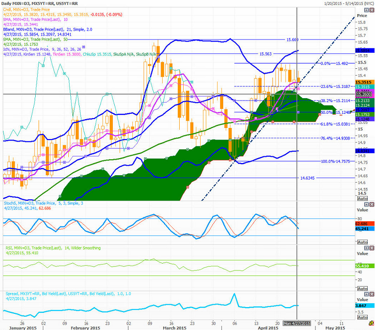 - Further support for USD/MXN seen by Daily Tenkan (15.30), then daily cloud top by 15.26