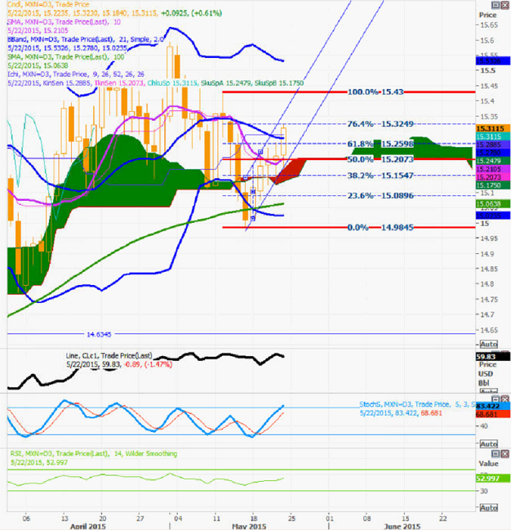 - USD/MXN resistance at 15.3565 trend channel top, Banxico offer 15.4611 caps