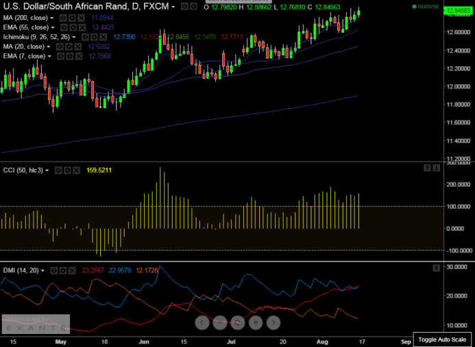 - Technically rand has broken major resistance 12.86 (12th Aug high) and jumped till 12.88.
