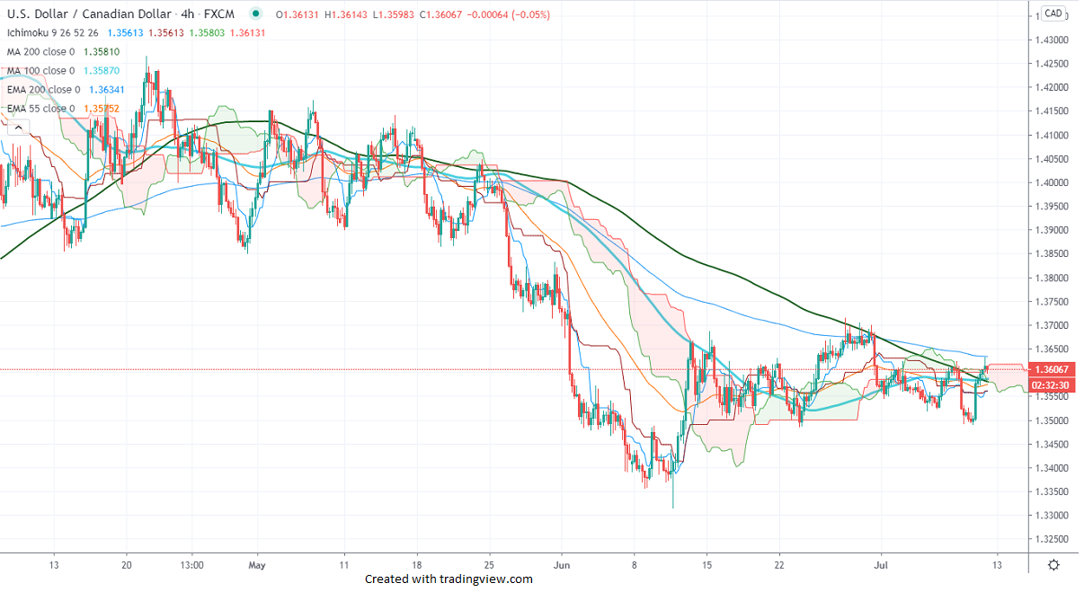 USDCAD recovered more than 100 pips from a low of 1.34990 on broad-based US dollar buying and weak crude oil prices. The pair was one of the worst performers in the past four months and has lost more than 1100 pips on strong crude oil prices.