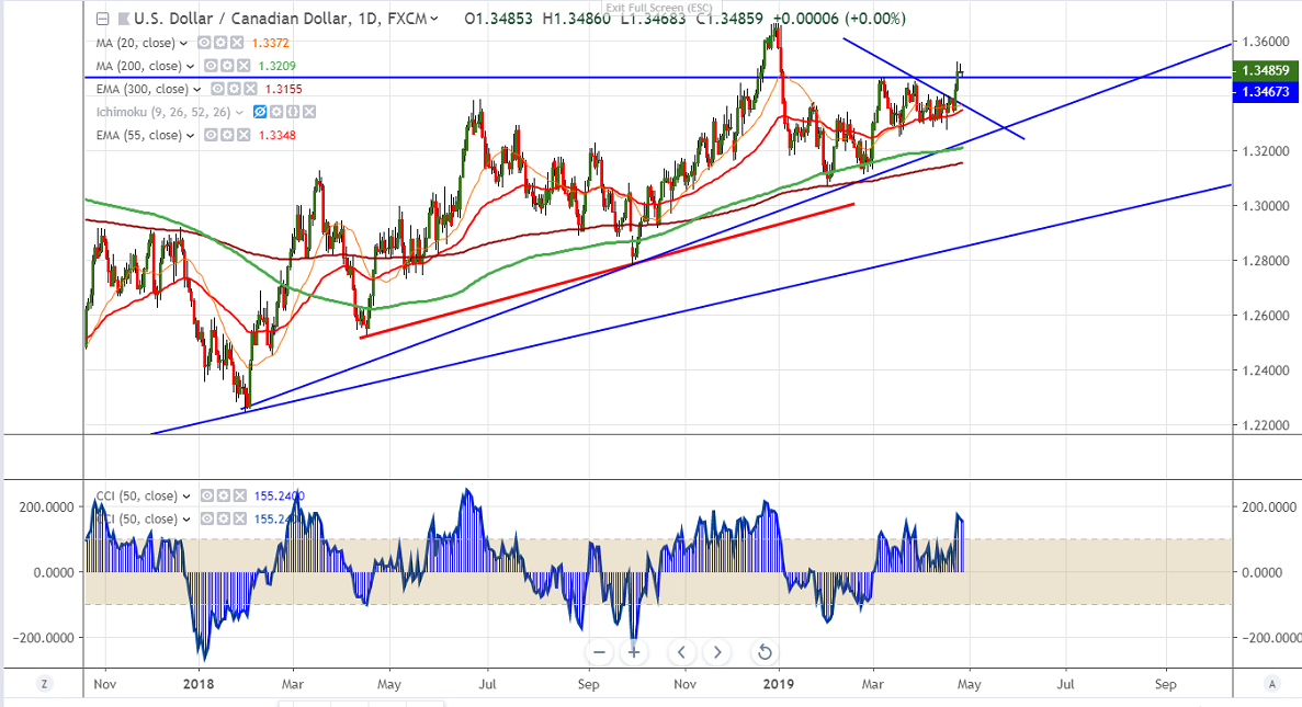 The near term resistance is at 1.35250 and any convincing break above will take the pair till 1.3580/1.3660.