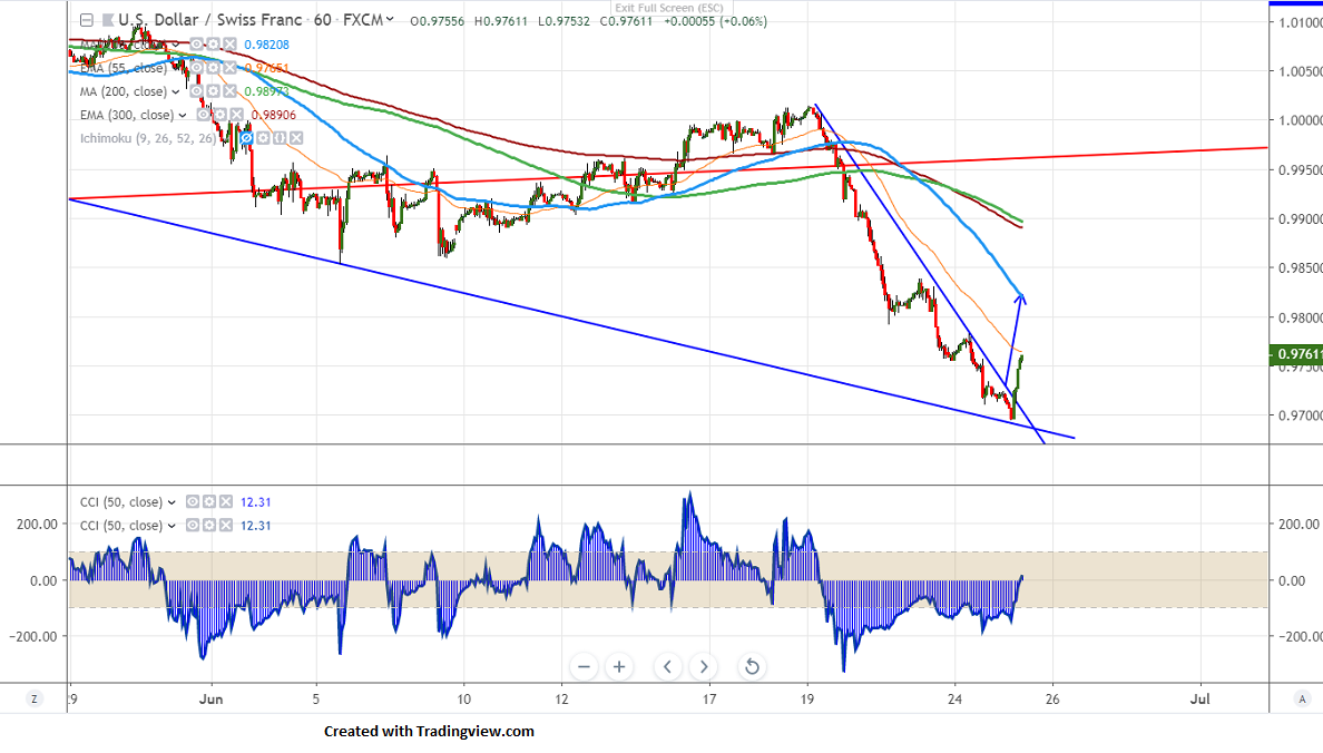 USDCHF has halted its 2-months of losing streak and pair has lost more than 500 pips from its high. The decline was mainly due to broad-based S dollar selling on the dovish Fed and escalation of tension between US-Iran. Yesterday it has formed bottom around 0.9690 and shown a more than 50 pips recovery.
