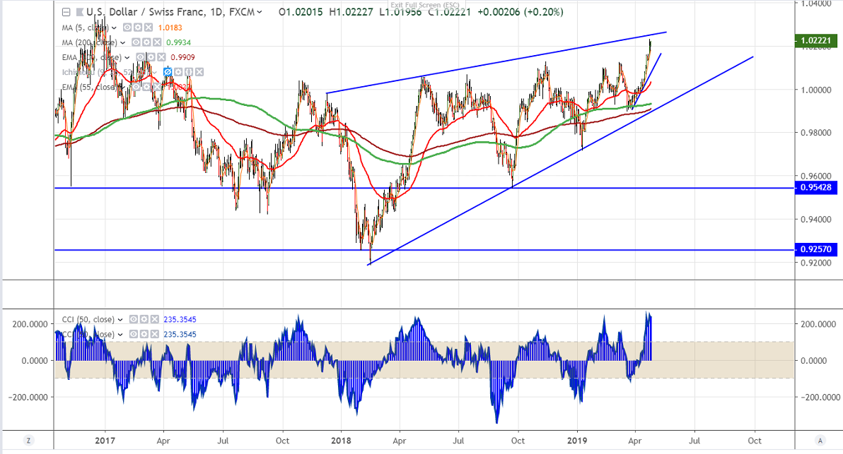 USDCHF has once again recovered after hitting low of 1.01689.The pair was trading higher for past one month and jumped more than 300 pips . It hits 13 month high at 1.02380 and is currently trading around 1.0223.The jump was mainly due to broad based US dollar buying and easing trade tension has decreased demand of safe haven assets. Markets eye US durable goods order for further direction.