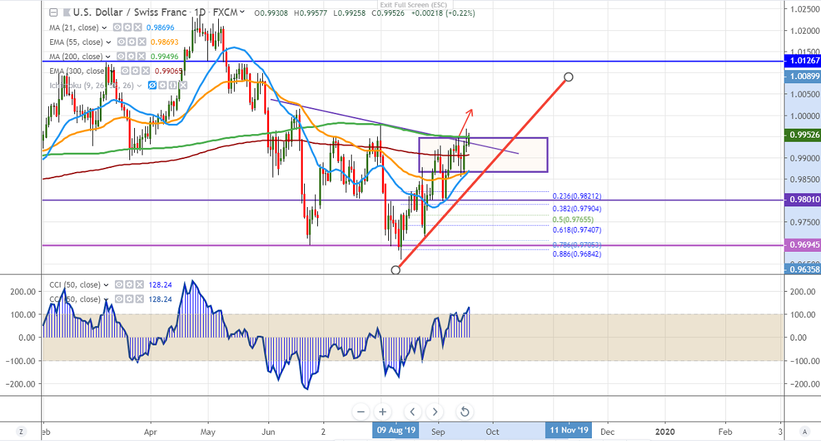 The near term resistance is around 0.99758 high made on Aug 1st, 2019 and any break above targets 1.000/1.0030 level.