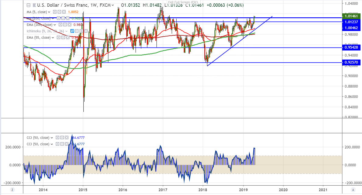 USDCHF is trading higher for 4th consecutive week and hits fresh 2019 high. The pair has broken major resistance 1.01285 high made on Nov 13th and jumped till 1.01594. The jump was mainly due to US-China trade optimism and strong Chinese data has increased risk appetite. The recent data released in US came better than expected especially retail sales and jobless data. It is currently trading around 1.01459.