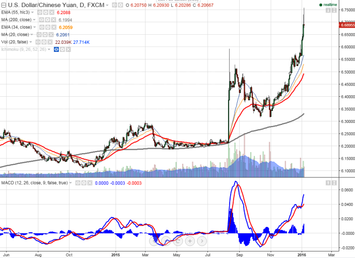 USDCNY hits 5- year high at 6.7584 on devaluation and weak Chinese data