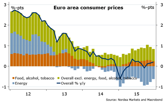 "We expect the headline rate to rise to ½% y/y in January and to hover around that level in Q1. Still, further ECB easing measures cannot be ruled out", says Nordea Bank.