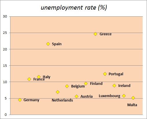 - Fragmentation is diminishing but still at the higher end. While unemployment rate at very low in Germany (4.5%), Malta (5.1%), Austria (5.6%), countries like Greece (24.6%), Spain (21.6%), Cyprus (15.1%) suffering high level of unemployment.