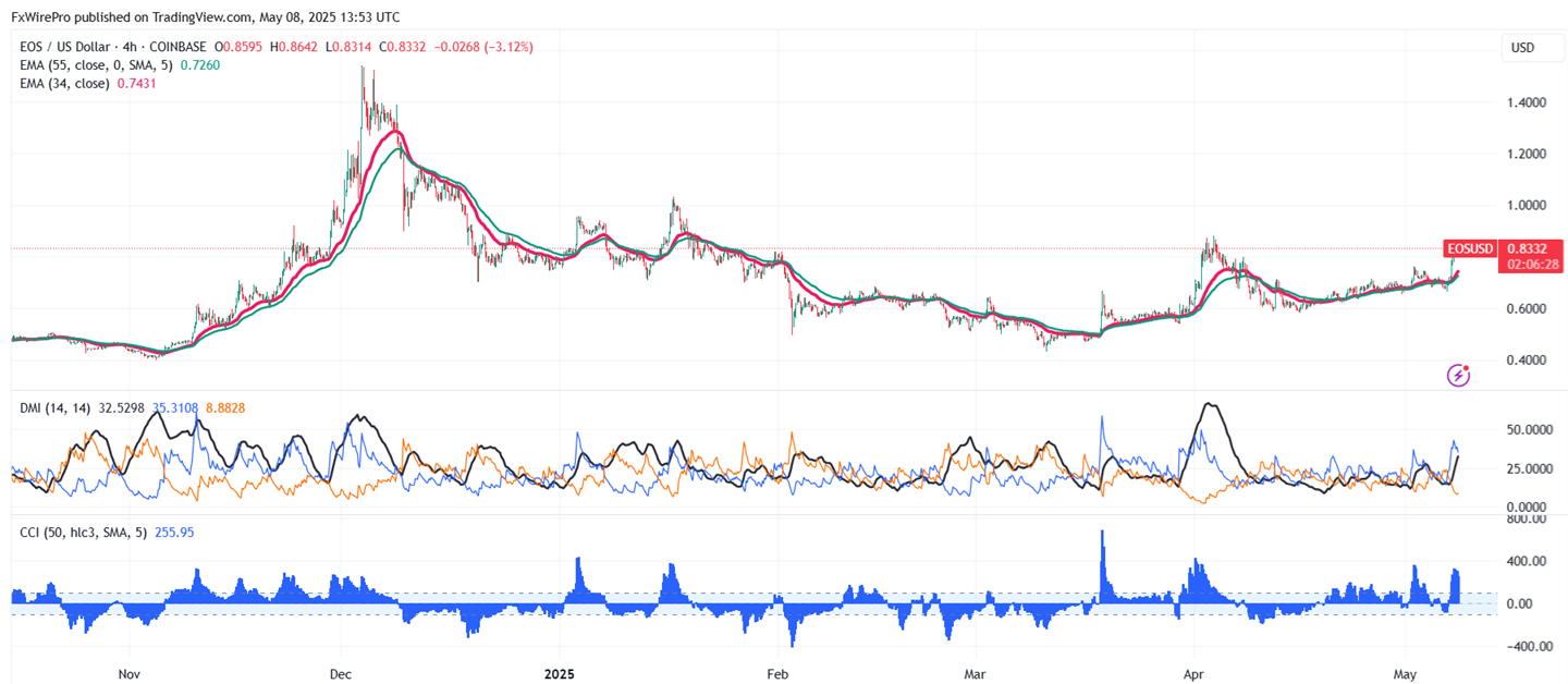 EOS has been rebranded Vaulta to strategize its path towards Web3 banking and DeFi, a 1:1 token exchange scheduled for May 14, 2025. This renaming has caused an extreme price jump, nearly doubling the value of EOS over the past month, with the token now at about $0.8429.
