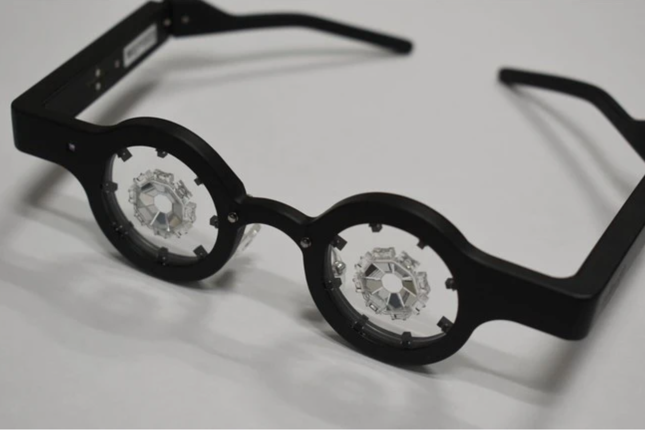 The glasses shine tiny lights at the retina to simulate short-distance blurring, forcing the user to look further ahead and in doing so taking the pressure of the axial deformation of eyeballs.