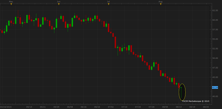 The pattern will form if WTI is able to close today around $42.1-$42.2, which will form the doji or closing at high, which would form a hammer.