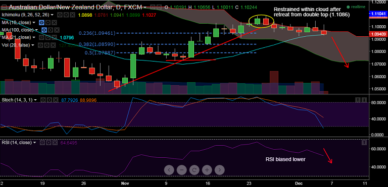 AUD/NZD trades in a neutral setup - 21 DMA at 1.0936 is pivotal support, close below could expose 1.0860 (32.8 % Fibo 1.0496-1.1086 rise).