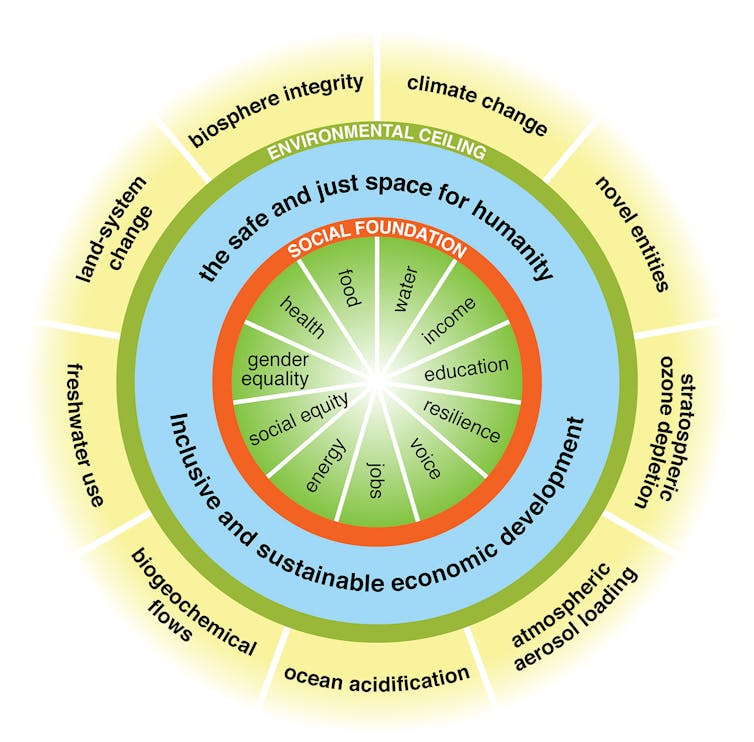 Living within this space, according to Raworth, demands inclusive and sustainable economic development, which is becoming known as “donut economics”. At a fundamental level, it means we design our economic policies to look after the planet and everyone on it.