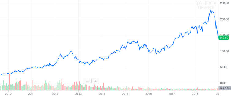 As I argued in an article in The Conversation a few weeks ago, the decline in Apple stock in recent months, down 37% since August 2018, reflects a change in market perception about the company’s ability to grow. Apple is no longer seen as a growth stock, but rather a dividend-paying, profitable company whose value is less based on a bright future than what is currently being delivered to its shareholders. The new financials confirm this view.