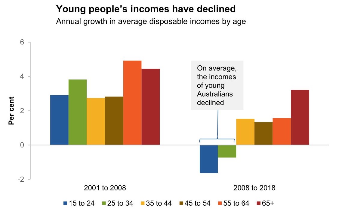 Where the Productivity Commission study substantially advances our understanding is by presenting a detailed analysis of why incomes of the young have declined.