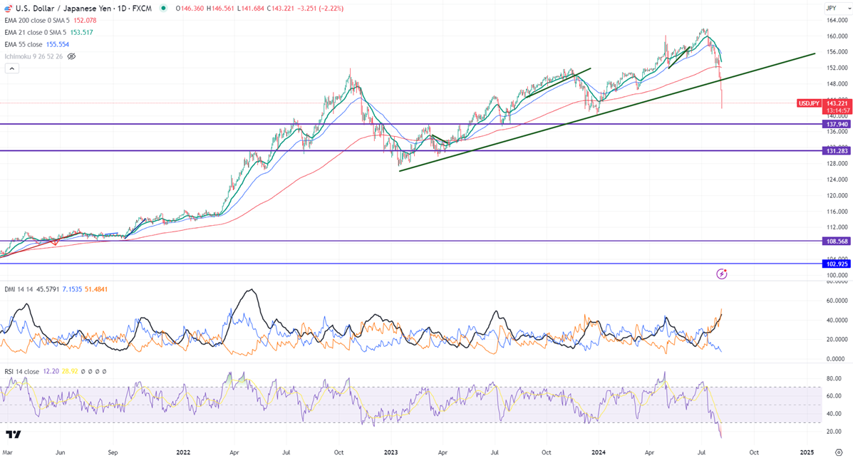 JPY strengthened strongly after the BOJ rate hike. The trader started to unwind their position in the US stock market as they paid higher interest rates due to rate hikes and huge forex loss (USDJPY depreciated from 155.21 to 141.68 in the past four days.