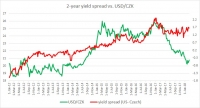 The chart above shows, how the relationship between USD/CZK and 2-year yield spread has unfolded since 2012. It can be seen even with a naked eye, that the pair and the yield spread between 2-year treasury and 2-year...