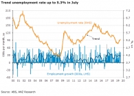 Australias surprisingly strong employment gain of 41.1k in June was largely due to a 34.5k rise in full-time employment. The unemployment rate remained at 5.2 percent with the participation rate increasing to a fresh...
