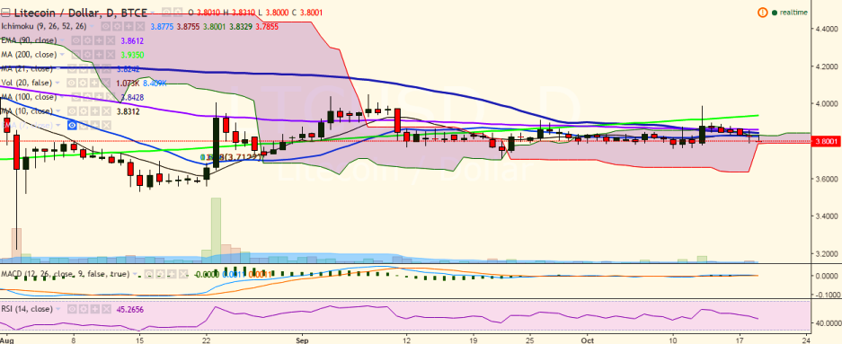 LTC/USD has hit a low of 3.80 levels so far in the day and is trying to trade in the green (BTC-e).