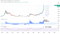 Silverhits a fresh all-time high of around $83.96 on increasing industrial demand. It hit a high of $78.06 yesterday and is currently trading around $72.50. Chart pattern- Bearish divergence (CCI(50) and over bought...