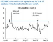 The peso sell-off triggered a vol surface dislocation, pushing gamma vols to 15.3 handle, the highest since June, and an even quicker reaction of front-end skews, reaching the highest since the 2016 US Presidential...