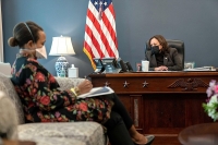 Kamala Harris speaks with Norwegian Prime Minister Erna Solberg