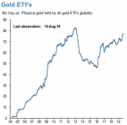 Golds gaining its traction a safe-haven sentiment, with inflows into ETFs (exchange-traded funds) hitting 1,000 tons since holdings bottomed in early 2016 after a prolonged unwind in the wake of the global financial crisis...