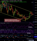 GBPAUDprices have been sliding through sloping channel in the minor trend, whereas the major trend has been spiking through the rising channel. Please be noted that the spinning top pops up at the channel resistance...