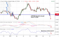 EUR/NZD slips lower, hits fresh one-year low of 1.5220, momentum bearish, we see scope for test of 1.5045 levels. The pair has broken below 200-SMA on the weekly charts, Technical indicators are heavily...