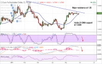 EUR/AUD remains capped below major trendline resistance (currently at 1.56). Pair sliding down along trendline resistance, currently holds above 21-DMA support at 1.5456. Breaks below will find next support at...